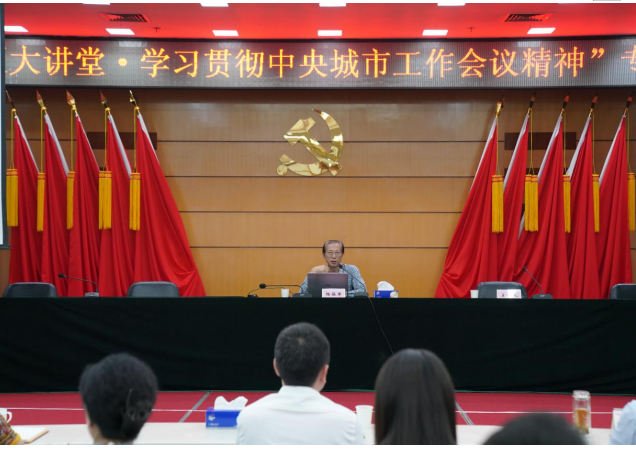 杨保军以“学习贯彻中央城市工作会议精神,谱写现代化人民城市建设新篇章”为题,从深入学习领会中央城市工作会议精神、坚决贯彻落实中央城市工作会议精神两个方面,全面解读了中央城市工作会议精神,强调重点理解六个“一”:一个理念、一个目标、一个主题、一条主线、一个抓手、一条新路子,对加快建设现代化人民城市工作给予了指导。