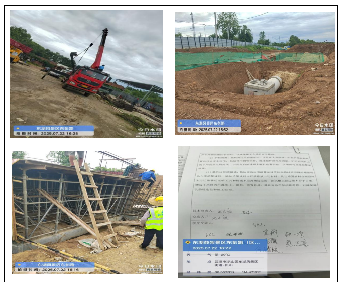 存在问题:项目经理及安全员实名制打卡出勤不足;未编制危大工程(雨水箱涵模板施工)监理细则;危大工程模板验收无总监理工程师签字;危大工程(基坑开挖、箱涵模板)安全技术交底不规范;现场汽车吊吊装钢筋无信号司索工,钢板桩吊装钢丝绳存在断丝;现场使用自制木梯;井室基坑临边防护不连续。
