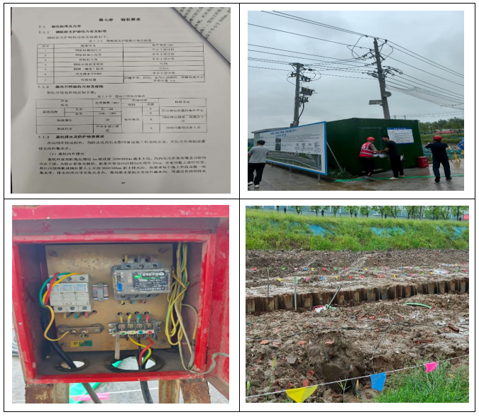 存在问题:基坑支护工程(钢板桩)未进行检查验收,未见经施工单位技术负责人及总监理工程师签字确认的验收记录;三级配电箱PE线未接;外电线路下面设置临建设施;基坑两侧临边防护栏杆未按规范设置;施工日志填写内容简单,安全、技术、质量等内容缺失,无人员签字;总包及监理单位对分包单位资质审查不严。