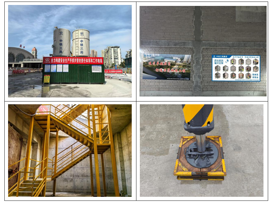 较好做法:项目严格落实文明施工“七个百分百”标准,定时清扫洒水降尘;车站砌体结构优选原材,施工工艺精益求精,成型结构观感质量达到清水墙效果;基坑人行安全通道标准化程度高,整体刚度与观感质量良好;起重吊装支垫标准化制作,确保起重吊装作业安全。