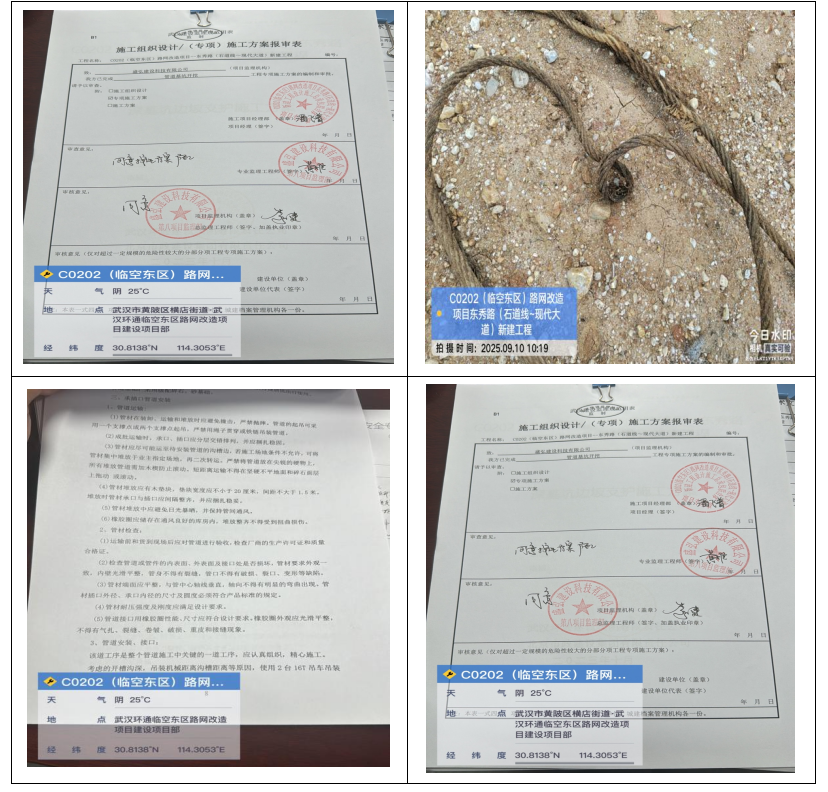 存在问题:超3米的管道基坑开挖、深基坑边坡支护施工方案技术负责人未签字,未加盖单位公章;起重机司机特种作业人员证件到期未更新;项目经理、安全总监未检查安全日志并签字;吊装钢丝绳存在磨损、断丝;管道吊装及安装设备无报审资料;危大工程方案审批页未见总监执业印章,无安全交底记录。