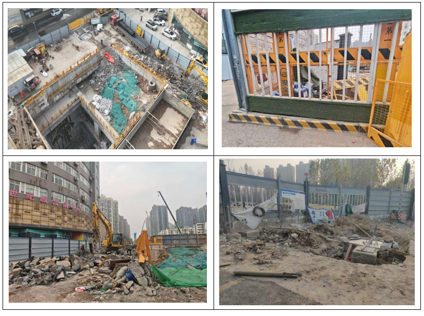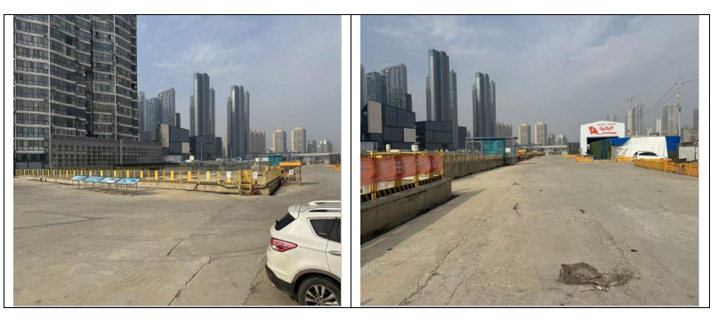 存在问题:未落实武汉市重污染天气橙色预警应急响应措施,现场混凝土路面破除作业,未采取喷淋降尘措施;场内平面布置混乱,道路存在严重积尘,建筑材料堆放混乱,建筑垃圾未清理外运,围挡周边道路存在散落泥土。