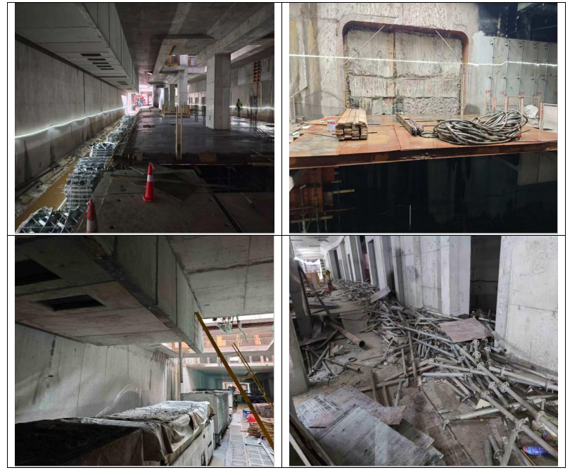 存在问题:站台层照明不足,卸料平台专项方案编审批不到位;建筑周转材料清理不到位,场内应急道通不通畅;预制轨顶风道接缝抹灰使用钢爬梯,架体稳定性不足;门式起重机拆除工程安全技术交底不到位,拆除顺序与方案不符,现场安全巡视与监理旁站人员未及时发现纠正。